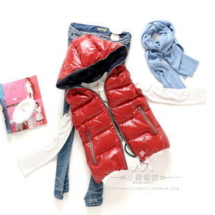 此款为今年最为流行的一款漆皮面包式羽绒马甲,超级倍受明星追捧,简洁而又时尚的设计超级吸引人们的视线,高品质的羽绒给人带来强烈的蓬松质感,用手用力按下在抬起会迅速还原,粗线条的拉链大幅的提升了整件YY的时尚度与现代感,略微夸大的连帽设计与整体相连,为整件YY添加了些许的俏皮感。 下摆和袖口采用螺纹收紧的设计,紧紧的包裹住身体,在很冷的冬季也不怕了。 此款为今年最为流行的一款羽绒马甲,也是时尚达人在此季不可缺少的一件单品.小爱强烈推荐给亲们,搭配长袖T和牛仔裤就是个不错的选择。